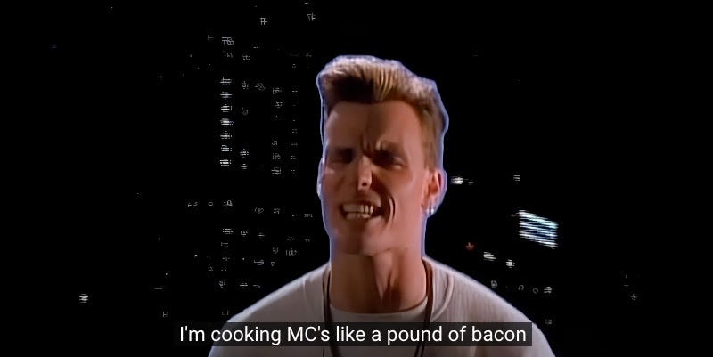 It will never not be hilarious that Vanilla Ice’s name in real life is Robert Van Winkle. The only thing that could possibly top this fact is that the song “Ice Ice Baby1” was written about his experience growing up in South Florida - a place truly known for being “too cold, too cold.” Well okay maybe another thing might top that. This blue screen-laden music video for the song that has been remastered in 4k is either a delight or a horror show depending on your vantage point.